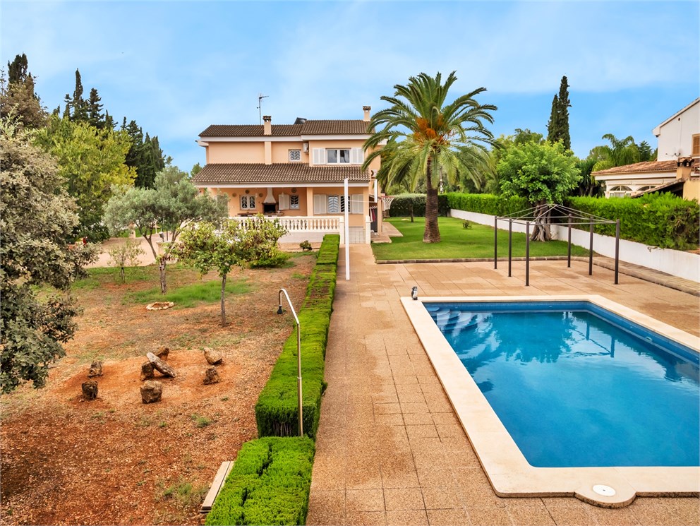 A comfortable home for your family with spacious gardens and a swimming pool. The house is distributed over two floors, with five bedrooms and five bathrooms. On the ground floor, you'll find the living and dining room, as well as the kitchen with access to the barbecue area, along with two bedrooms. The upper floor features a large common area and three bedrooms, each with its own bathroom. The home is spacious and filled with natural light.