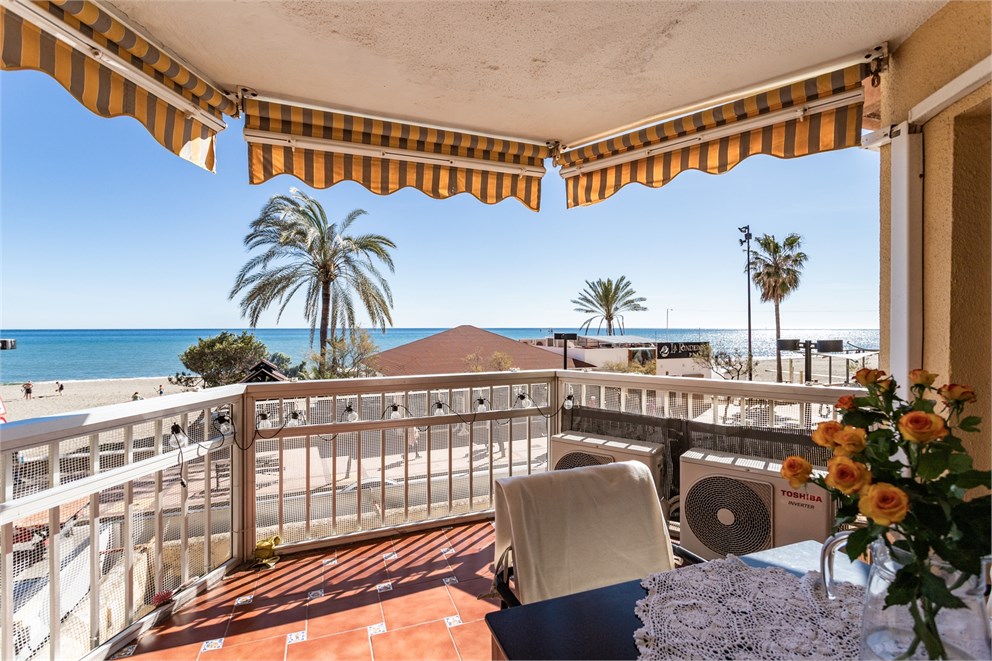 Bienvenido a este impresionante apartamento en primera línea de playa en Fuengirola, con vistas libres e ininterrumpidas de la playa y del mar Mediterráneo. Aquí, el mar es tu vecino más cercano, ¡ofreciéndote una panorámica inmejorable! La propiedad cuenta con un dormitorio, un baño completamente alicatado, cocina y un luminoso salón con grandes ventanales que permiten la entrada de luz natural y enmarcan hermosamente la vista al mar. Desde el salón se accede a la amplia terraza, con espacio s...