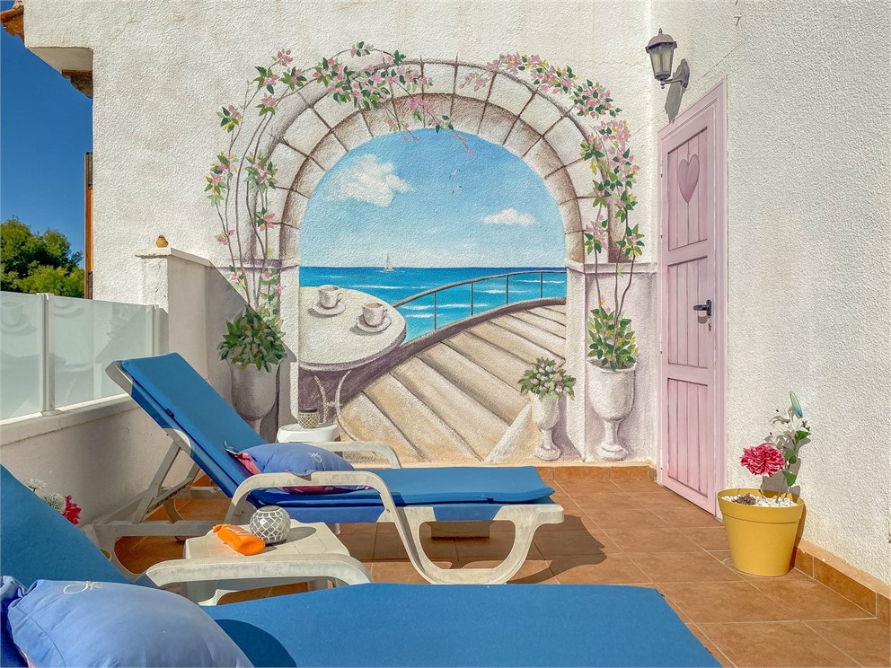 Bienvenido a Riomar, en Mil Palmeras y a este dúplex luminoso y con mucho encanto. La terraza se extiende por todo el lado sur y oeste de la vivienda. La planta principal cuenta con cocina, salón y un baño. En la planta superior encontrarás dos dormitorios tranquilos, otro baño y una soleada terraza. Justo afuera te espera una zona de piscina verde y acogedora, ¡Perfecta para días de relajación!