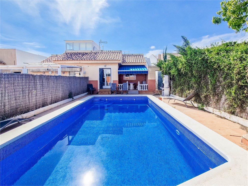 Adosado con piscina privada en pleno corazón de La Zenia. La propiedad dispone de jardín delantero con espacio para aparcar un vehículo, un lumisono salón-comedor, 3 dormitorios con armarios empotrados y un baño. Solarium y terraza trasera con piscina y zona de barbacoa ideal para compartir con amigos y familia. Ubicada sobre una parcela de aproximadamente 214 m² con orientación sur, ideal para disfrutar del clima mediterráneo. Ubicada a pocos minutos del popular centro comercial Zenia Boulevard con todos los servicios, supermercados, restaurantes y demas. La playa a menos de un kilometro. Lista para entrar a vivir o como excelente inversión.