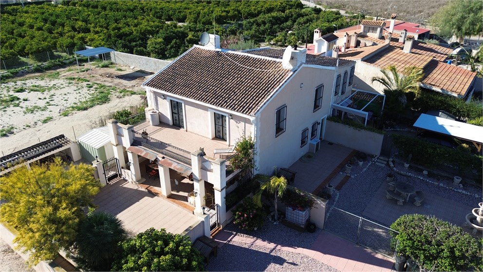 Drömmer du om sol, rymd och en medelhavsatmosfär? Detta magnifika toskanskinspirerade parhus i Albatera erbjuder allt detta och mer. Med 5 rymliga sovrum och 3 eleganta badrum är det det perfekta hemmet för en stor familj eller för dem som vill kombinera boende med gott om utrymme eller helt enkelt hyra ut halva bostaden. Fastigheten är helt legaliserad, med alla certifikat och dokumentation som krävs enligt gällande bestämmelser. Den ligger i ett trevligt lantligt område känt för sin naturliga omgivning och lugn. Det är en idealisk plats för dem som gillar utomhusaktiviteter, som promenader på landsbygden, ridning eller cykling längs leder i fullständig lugn och säkerhet. Trots sin naturliga och avslappnade miljö har fastigheten utmärkta transportförbindelser, med snabb tillgång till motorvägen och nära till olika byar med all typ av service.