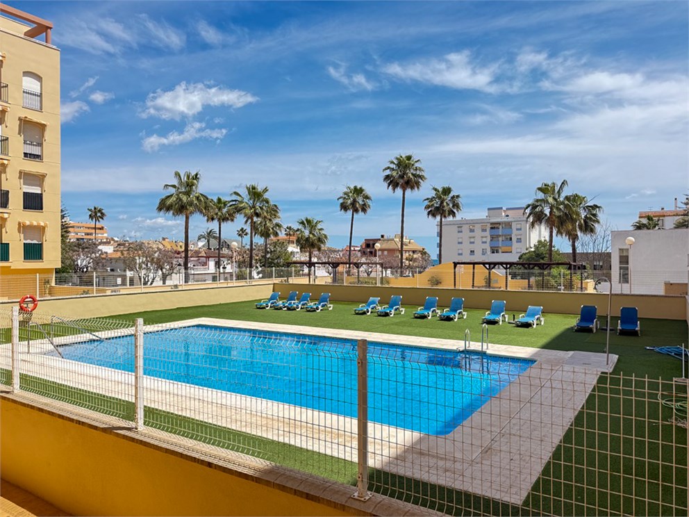Upptäck denna tvårumslägenhet i ett attraktivt, centralt läge – endast 200 meter från stranden i Sabinillas! Här bor du med närhet till havet samtidigt som du har allt du behöver runt hörnet. Bostaden håller genomgående bra standard och smart planerade ytor. De två rymliga sovrummen och två helkaklade badrummen skapar både komfort och funktionalitet – perfekt för såväl permanentboende som semesterdröm. Det öppna köket smälter harmoniskt samman med vardagsrum och matplats, vilket ger en social och inbjudande atmosfär. De stora fönsterpartierna släpper in rikligt med ljus. Från vardagsrummet kliver du ut på en privat balkong. I föreningen finns ett trevligt poolområde där du kan njuta av soliga dagar året om. Läget är svårslaget – på andra raden från stranden, bara ett stenkast från havet och omgiven av alla bekvämligheter du kan önska: restauranger, caféer, butiker, skolor, apotek och smidig kollektivtrafik. Ett hem som kombinerar livskvalitet och läge – redo att flytta in i!