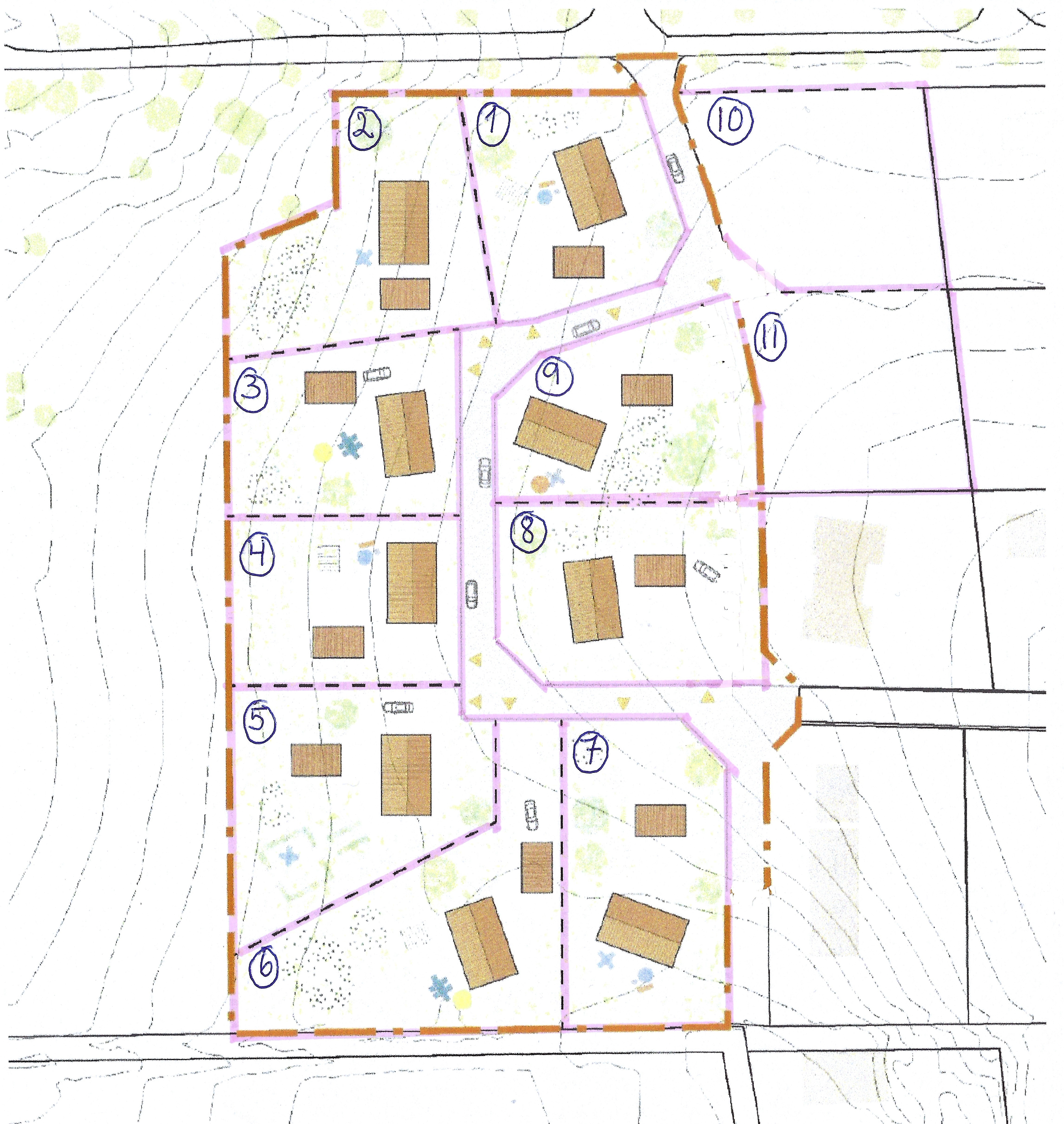Hela området består av tre etapper. Etapp ett och två, 25 tomter, är slutsålda och inflyttade.