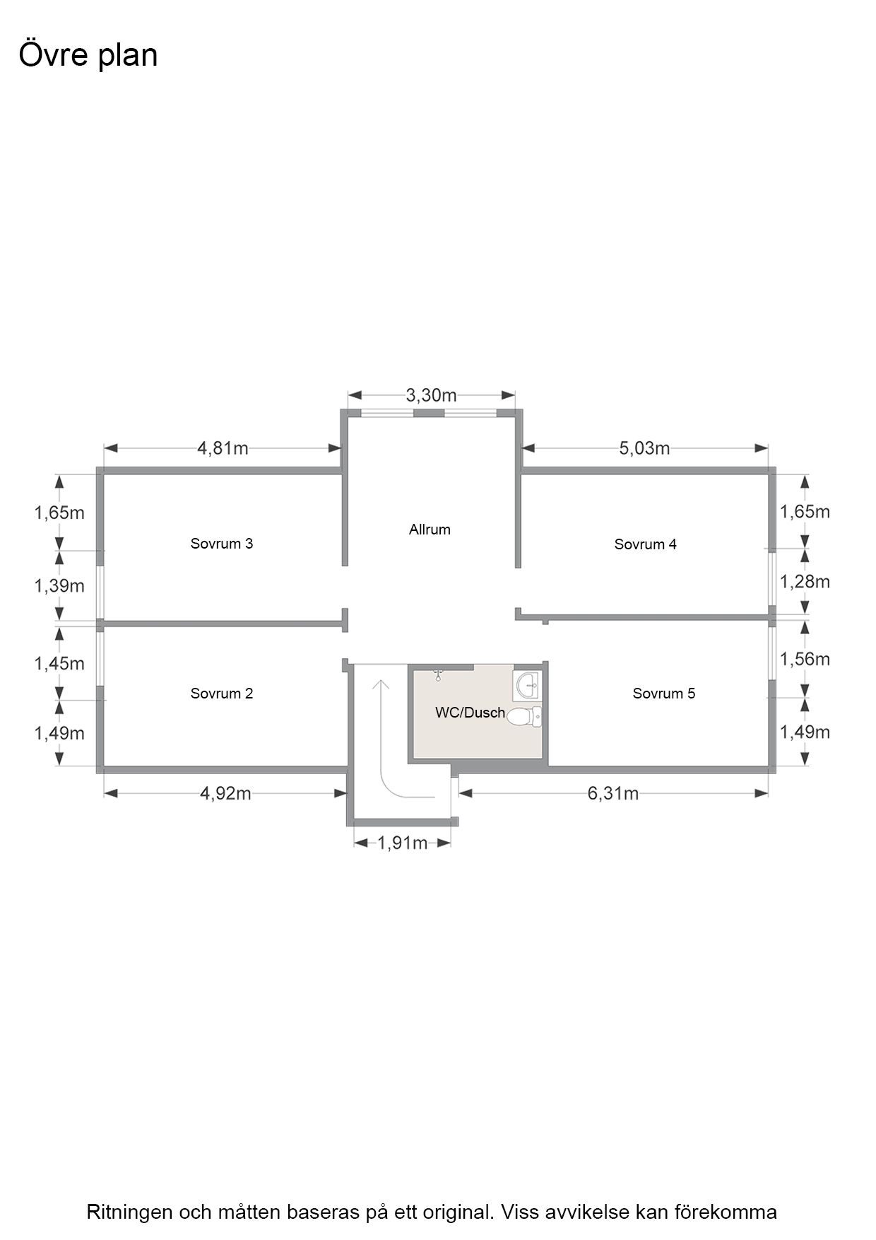 hall/allrum, fyra rymliga sovrum.